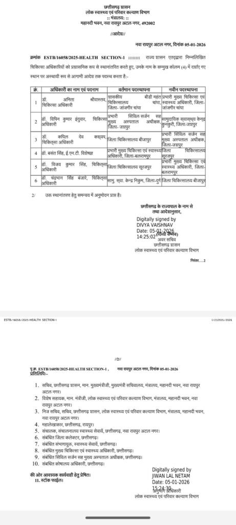 फिलहाल, जांजगीर–चांपा जिले का यह मामला सिर्फ एक प्रशासनिक आदेश तक सीमित नहीं रह गया है, बल्कि यह व्यवस्था, पारदर्शिता और जवाबदेही की कसौटी पर खड़ा एक बड़ा सवाल बन चुका है।